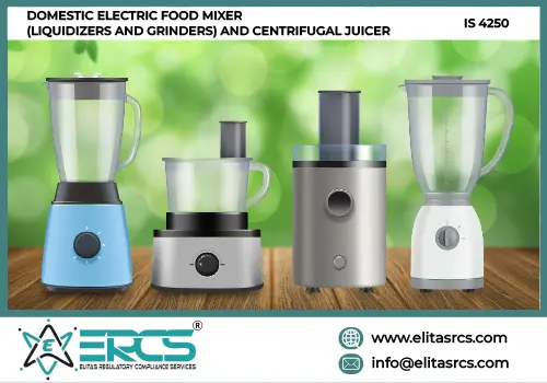 BIS CERTIFICATION OF DOMESTIC ELECTRIC FOOD MIXER (LIQUIDIZERS AND GRINDERS) AND CENTRIFUGAL JUICER IS 4250:1980