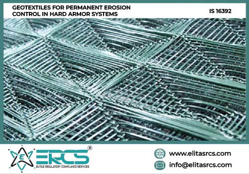 IS 16392 covers Geotextiles for Permanent Erosion Control in Hard Armour Systems. This standard covers general and performance requirements for geotextiles used between energy absorbing armor systems and the in-situ soil to prevent soil loss resulting in excessive scour and to prevent hydraulic uplift pressures causing instability of the permanent erosion control system. This standard does not apply to other types of geosynthetic erosion control materials such as turf reinforcement mats. Woven slit film geotextiles, that is, geotextiles made from yarns of a flat, tape-like character, shall not be used for permanent erosion control applications